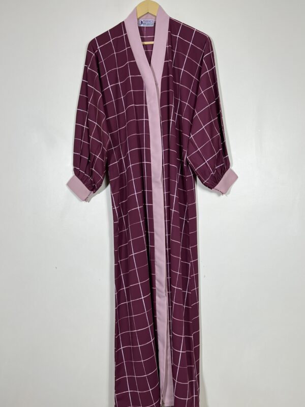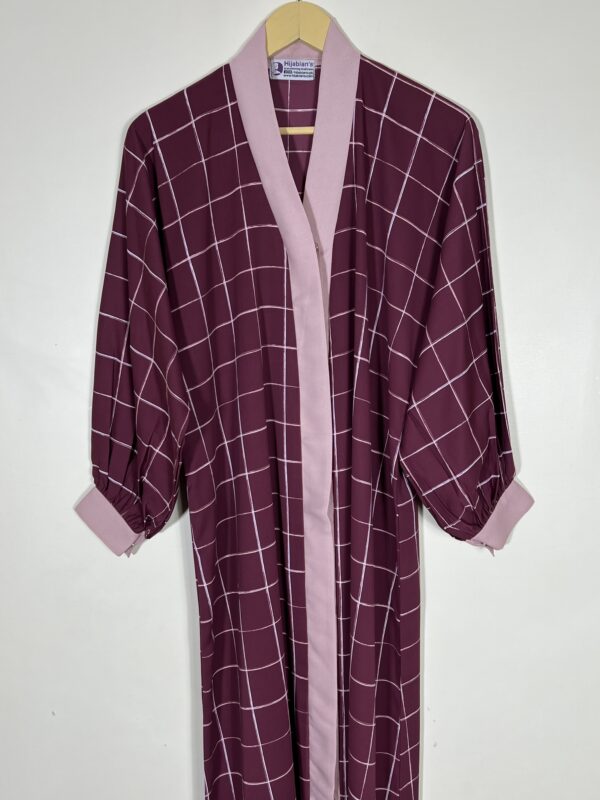 Maroon – Check Print Front Open Abaya HJ-0536